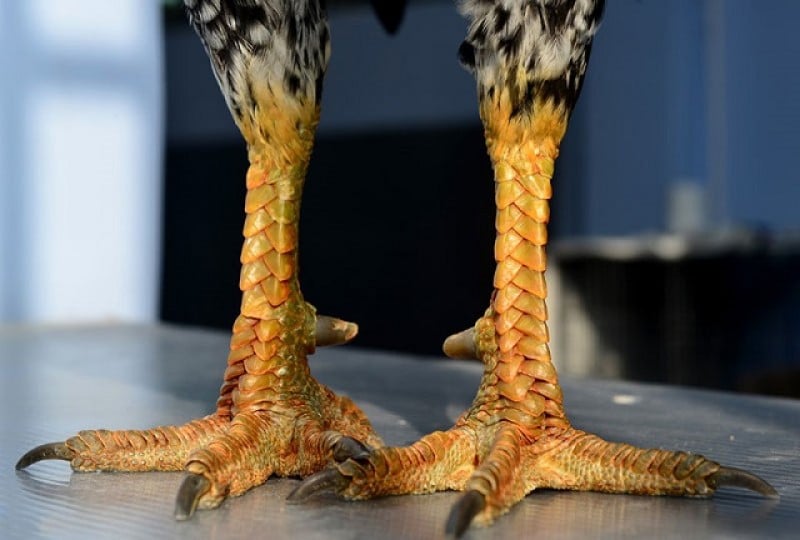 Đây chính là hảo chiến kê sở hữu các vảy gà nhỏ được xếp theo chiều dọc tính từ đầu gối xuống chân.